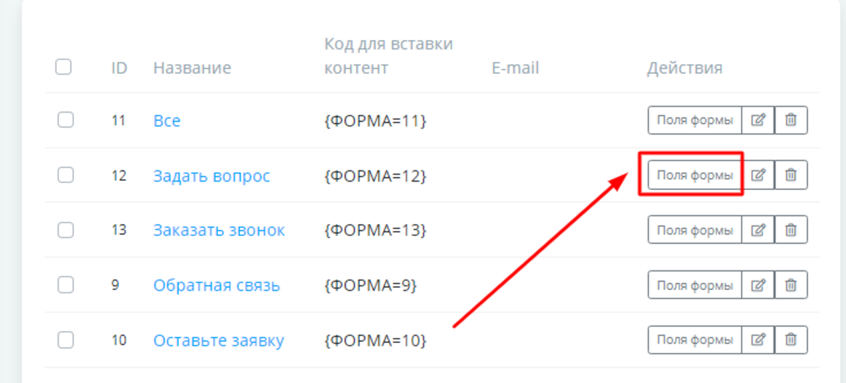 У нас есть еще одна кнопка редактирования — это «ПОЛЯ ФОРМЫ»: