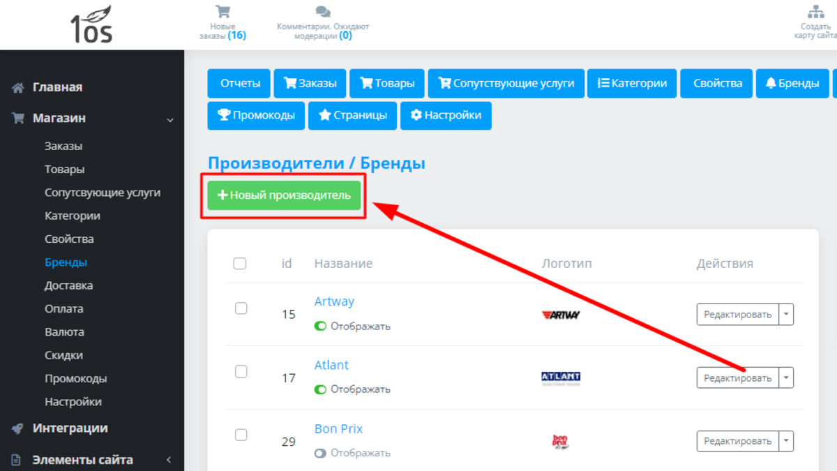 Таким образом, работать с брендами на конструкторе 1os очень просто. И вы можете использовать этот эффективный инструмент для повышения продаж, оперативно внося корректировки при изменении ассортимента интернет-магазина.