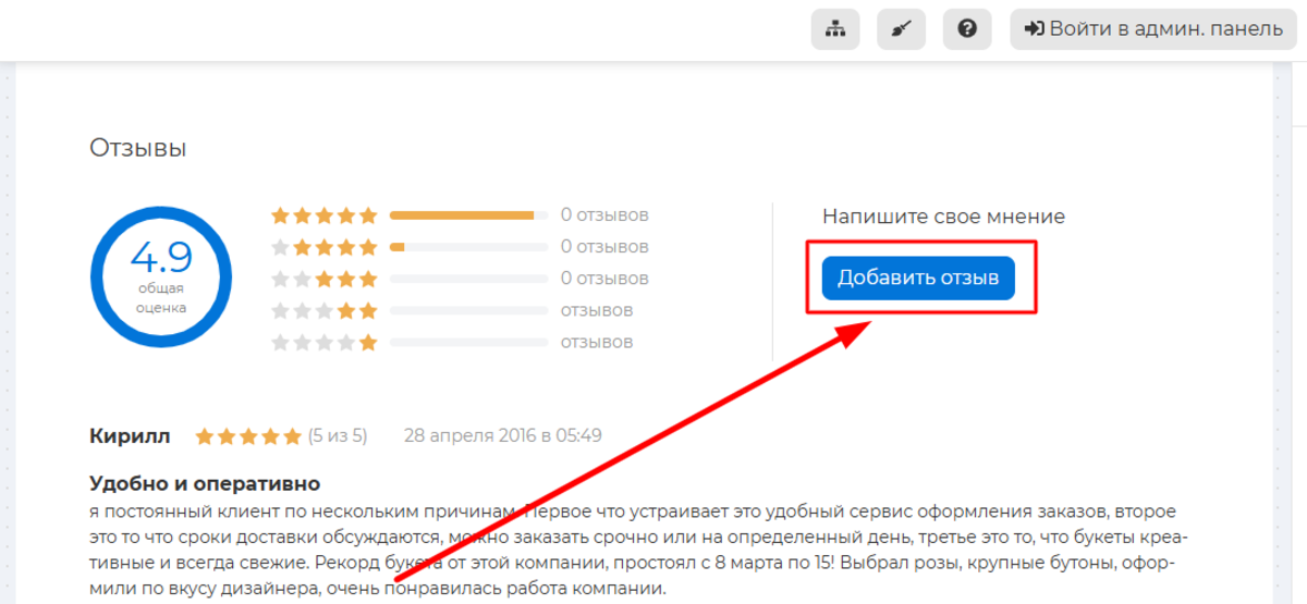 Но есть и еще одна важная кнопка — «ДОБАВИТЬ ОТЗЫВ». Воспользуйтесь ею, если магазин только начал развиваться, покупателей мало, а впечатление бурной деятельности создать требуется: