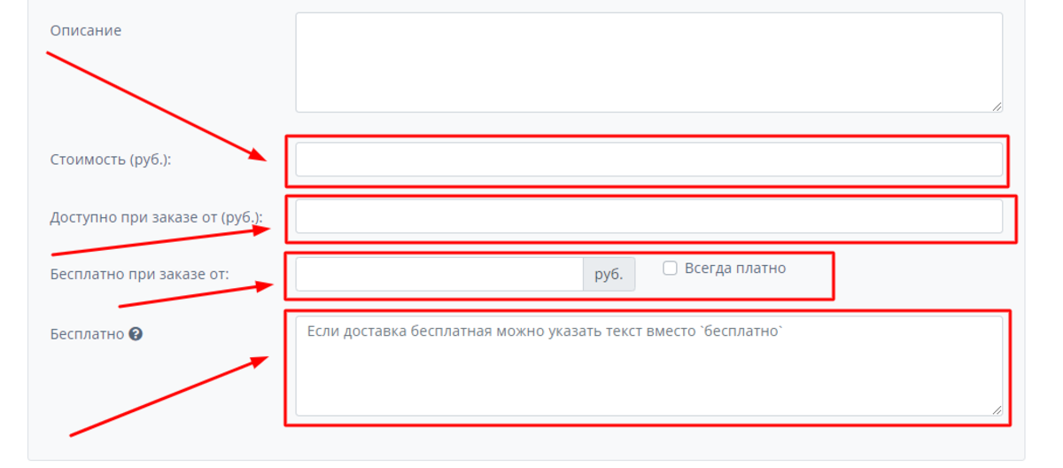 Внимательно заполните поля, связанные со стоимостью доставки. Перепроверьте, ошибки здесь недопустимы: