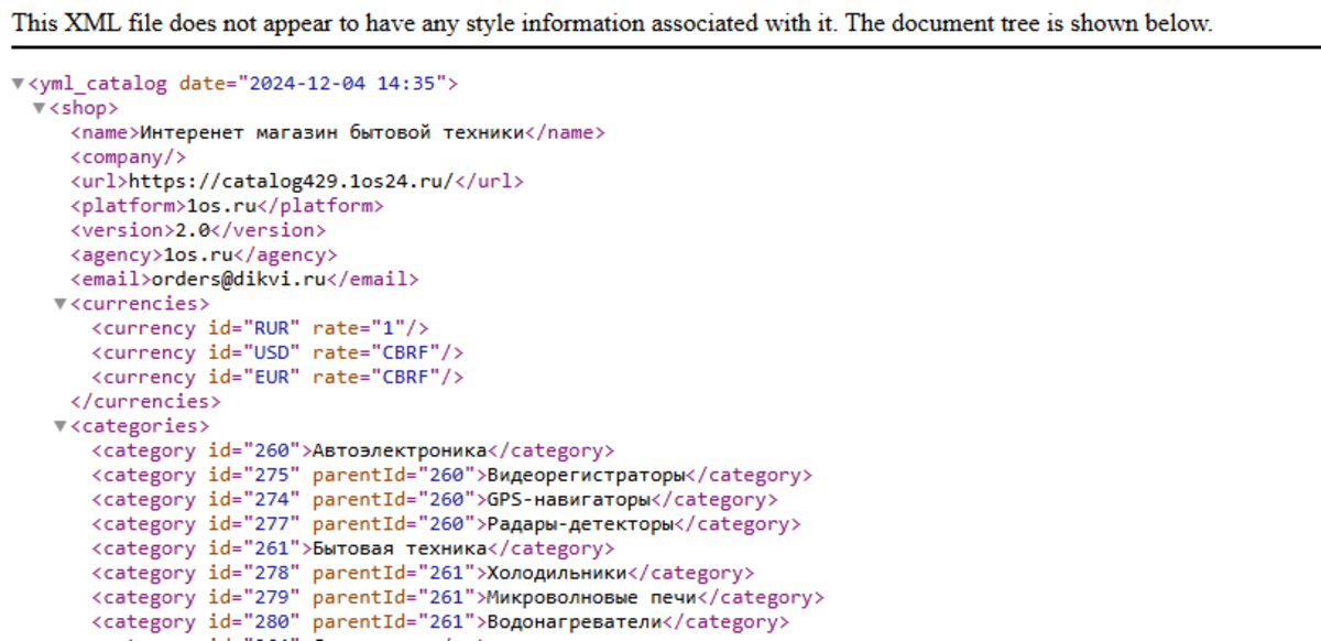 Адрес в адресной строке браузера и будет той информацией, которую вы в дальнейшем перенесете в настройки своего магазина на Яндекс.Маркете.
