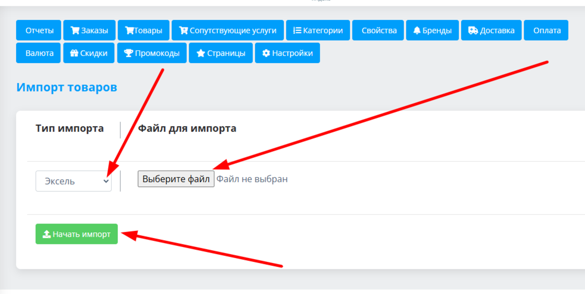 При нажатии кнопки "ВЫБЕРИТЕ ФАЙЛ" откроется проводник, благодаря которому вы выберете файл со своего компьютера. Далее нажмите "НАЧАТЬ ИМПОРТ". По завершении процесса обязательно проконтролируйте результат на предмет корректности внесения и размещения информации.