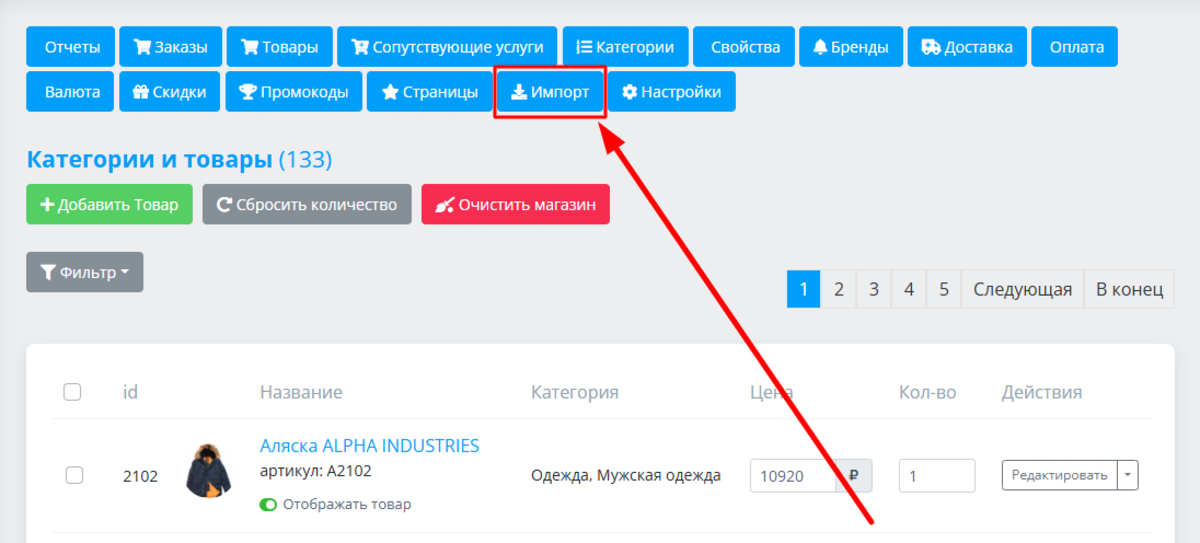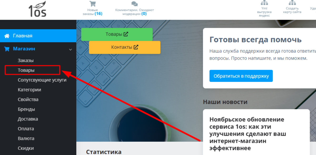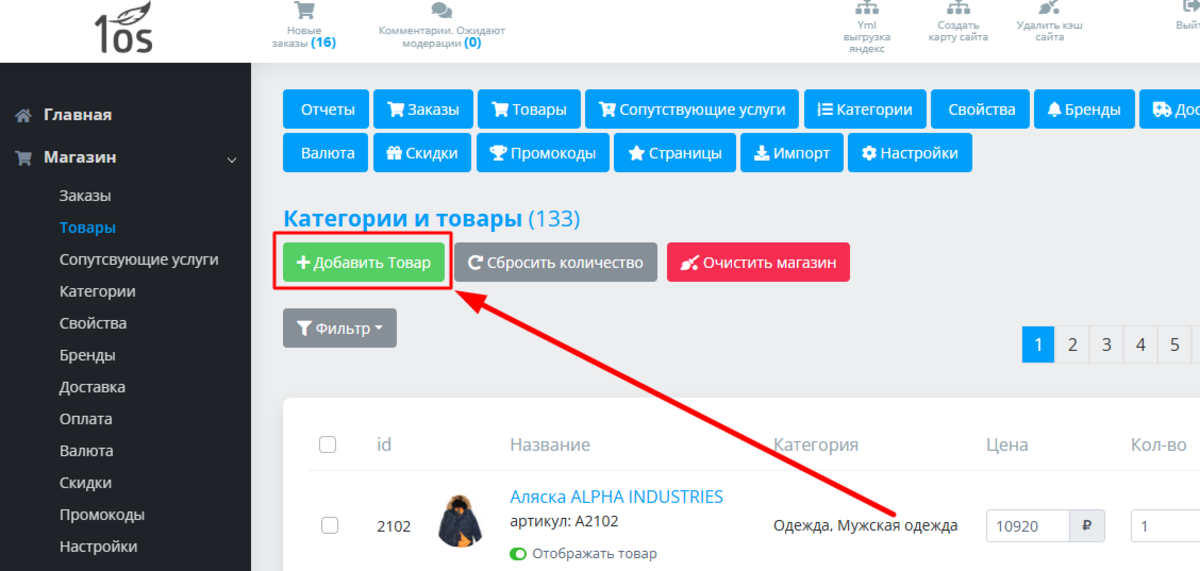 Как войти в раздел управления товарами