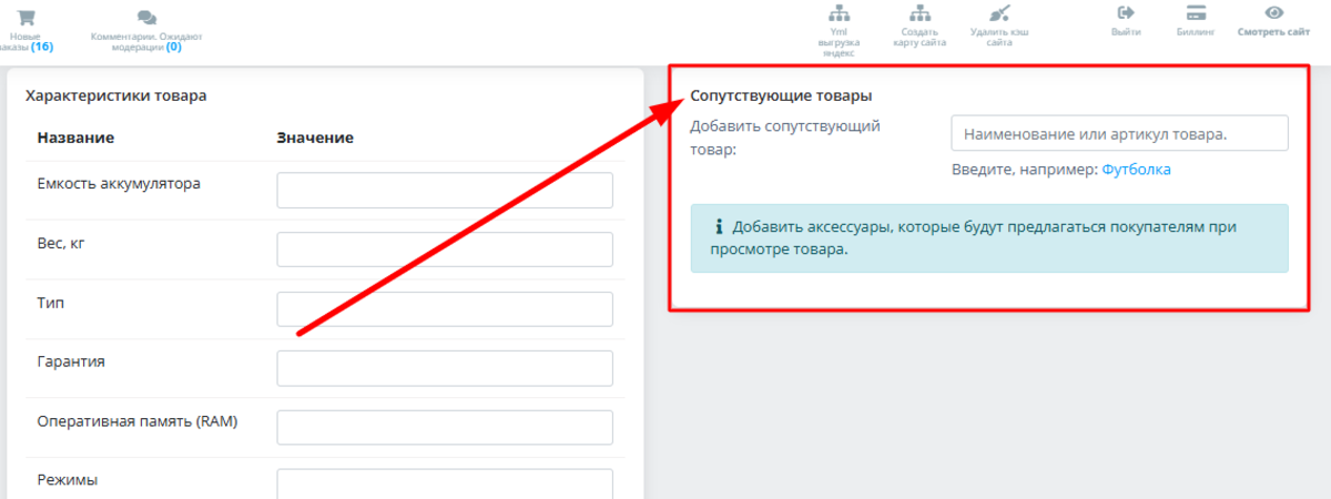 Рекомендуем указывать сопутствующие товары - специалисты-маркетологи считают, что это простое действие увеличивает средний чек на 30%: