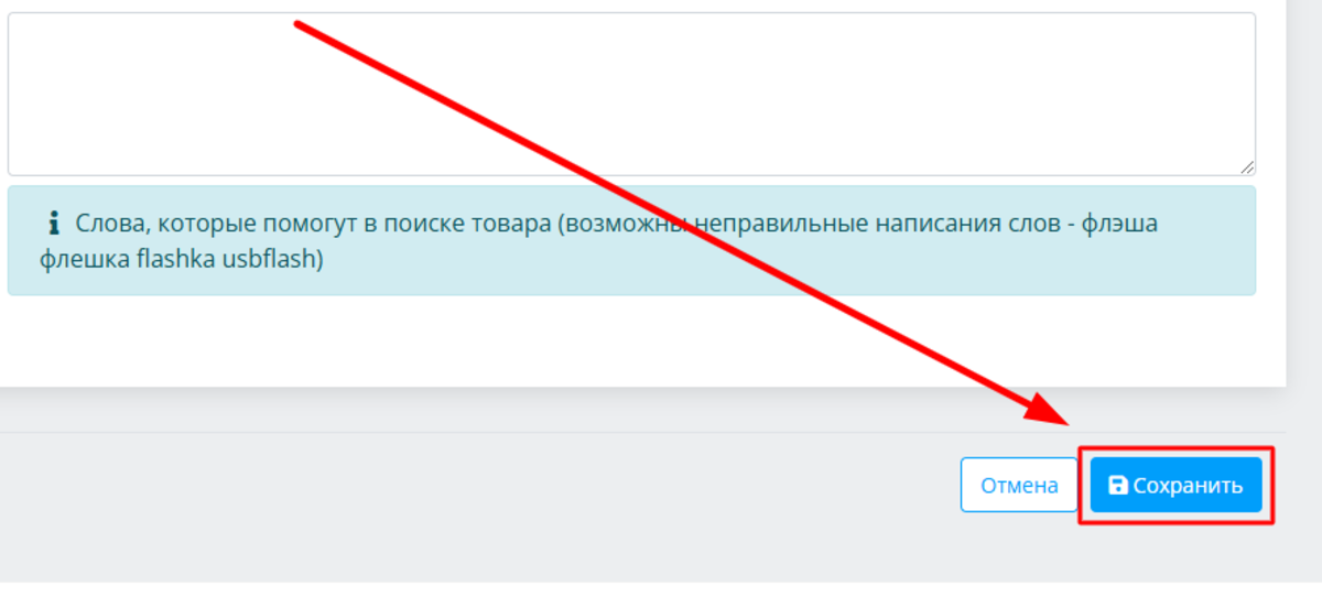 Под полем для описания товара расположена плашка с кнопкой «SEO настройки». Нажмем на флажок справа: