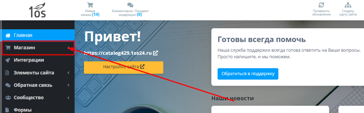 Начнем со входа в административную часть созданного вами интернет-магазина. Как это сделать, подробно рассказано в соответствующей инструкции.
