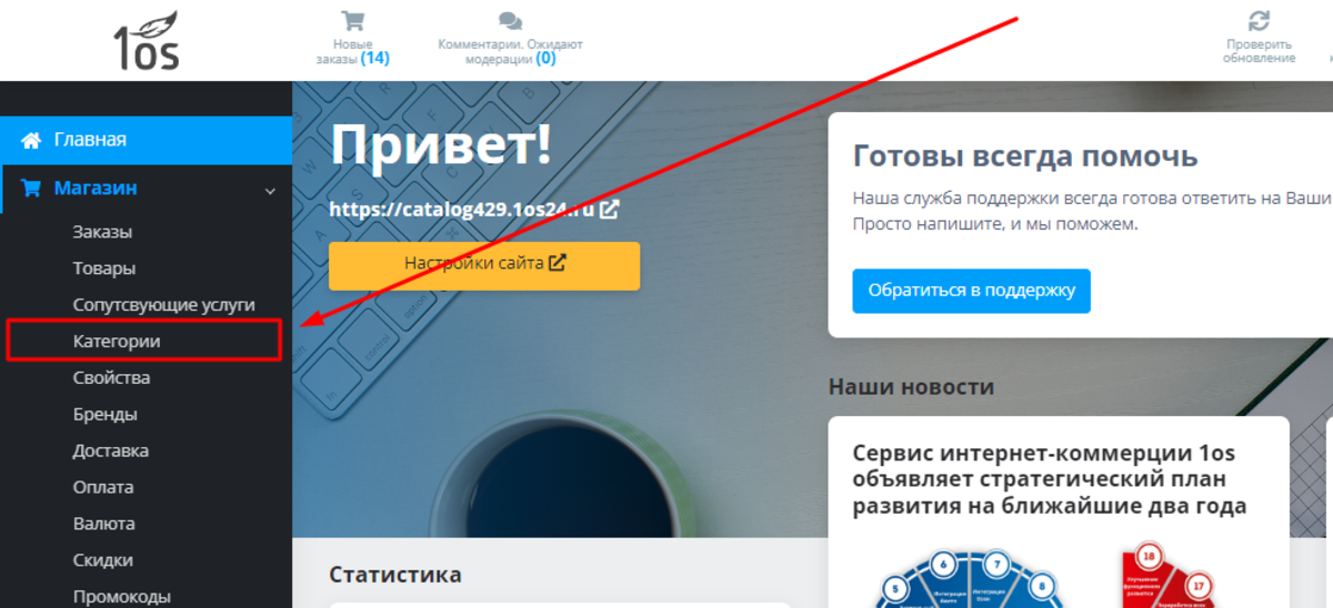Любые манипуляции с наполнением вашего сайта производятся из личного кабинета на сервисе интернет-коммерции 1os. Удаление категорий и товаров - не исключение.