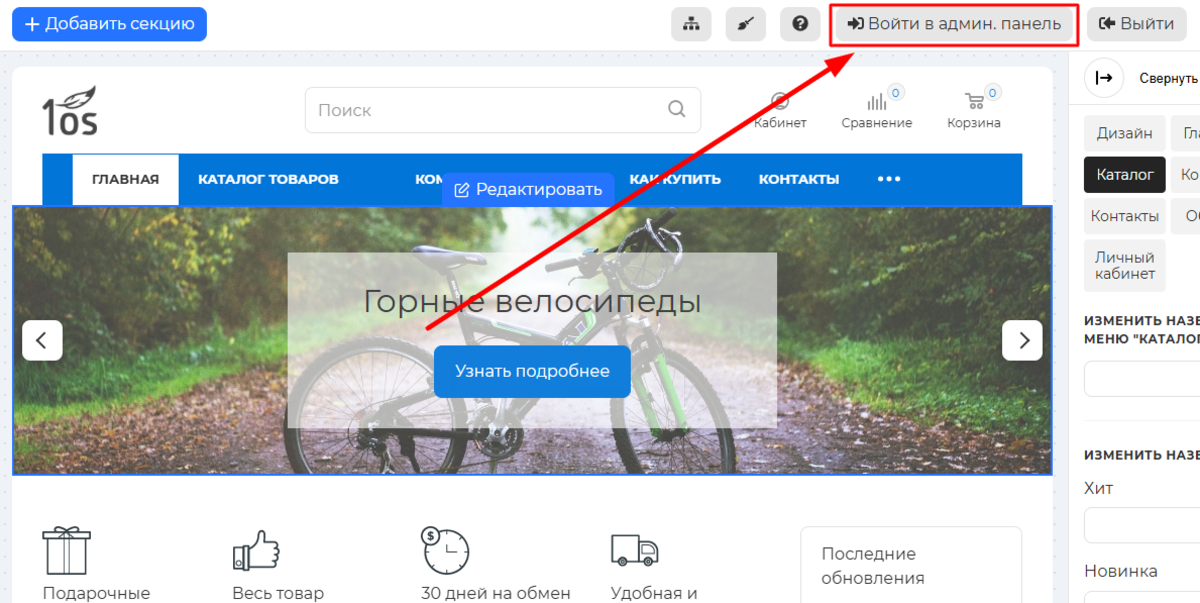 найдите справа верху кнопку "Войти в админ. панель". При ее нажатии