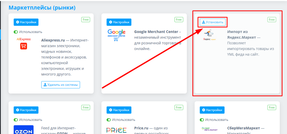 В блоке Яндекс.Маркета находим кнопку "Установить". Нажмем ее: